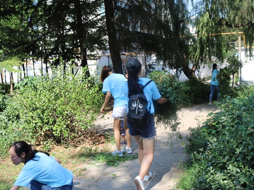 小组负责人与当地村委主任取得联系后,主任进行工作安排和指导,为实践团的工作提供了各种方便条件,有利于工作的顺利开展。实践团的工作是在社区广场上进行杂草清理。清理杂草的工作虽然有些无趣,但耐不住实践团成员们苦中作乐,他们和来往的行人探讨环保知识,和队员共同交流近期实践的心得体会,一起唱起校歌《你伴随我》,为彼此打气。在广场上活动的居民们详细询问了实践团成员们此行的工作目的,对其工作开展内容表示感谢,并表扬实践团成员展示出了当代大学生的风采。本次活动充分展示出宣讲团的实践主题——齐绘“美丽”画卷,共享健康人生。