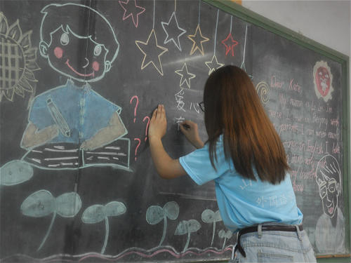为丰富留守儿童课余生活,展示留守儿童的艺术才能,表现留守儿童的心声,创建和谐的校园,7月20日上午,“留守踏歌”社会实践团在德州市武城县四女寺镇明德小学开展了留守儿童制作黑板报活动。学生们积极参加。