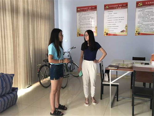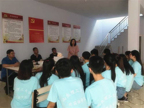 历经三个多小时长途跋涉,外国语学院领导、老师来到了实践地点。会前,三位书记和老师们为队员们准备了解暑水果,并关心地问候实践队员的目前情况,支教进度及住宿环境等。