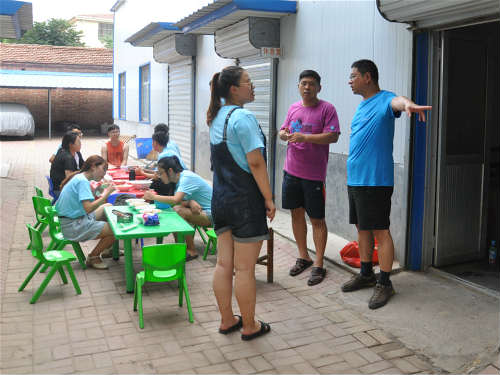 正值实践团成员午饭期间,高名亮和刘晓东来到明德小学给“留守踏歌”的队员们带来解暑的水果,并对实践团目前的生活情况、社会调研工作进度及住宿环境进行了解。在与实践团负责人谈话中,高名亮首先对“留守踏歌”的全体成员表达感谢,他提到同学们愿意放弃安逸的假期生活,选择在炎热的天气出来调研的奉献精神应该给予表扬。随后,他肯定了实践团在外语学习方面对孩子们的帮助及取得的成果,同时也鼓励实践团的队员们继续鼓足干劲,坚持不懈。最后,高名亮表示对实践团成员寄予了殷切的期望,希望实践团成员们在接下来的调研工作中再接再厉,努力把调研工作做到自己所能达到的完美程度,为自己交一份满意的答卷。
