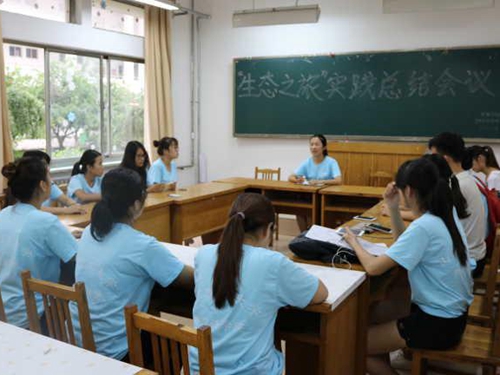 为对社会实践活动中出现的各种问题及解决方法进行汇总,7月25日,外国语学院“生态之旅”实践宣讲团在8号教学楼108室召开社会实践总结会议。实践团负责人张悦主持会议,实践团成员积极参加。