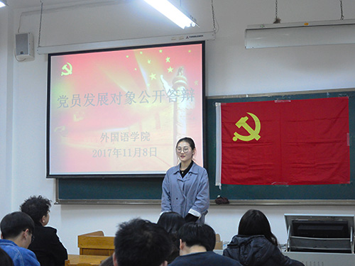 11月8日下午,外国语学院于8号教学楼306教室举行党员发展对象公开答辩活动,学院12名党员发展对象参加了此次答辩考核。