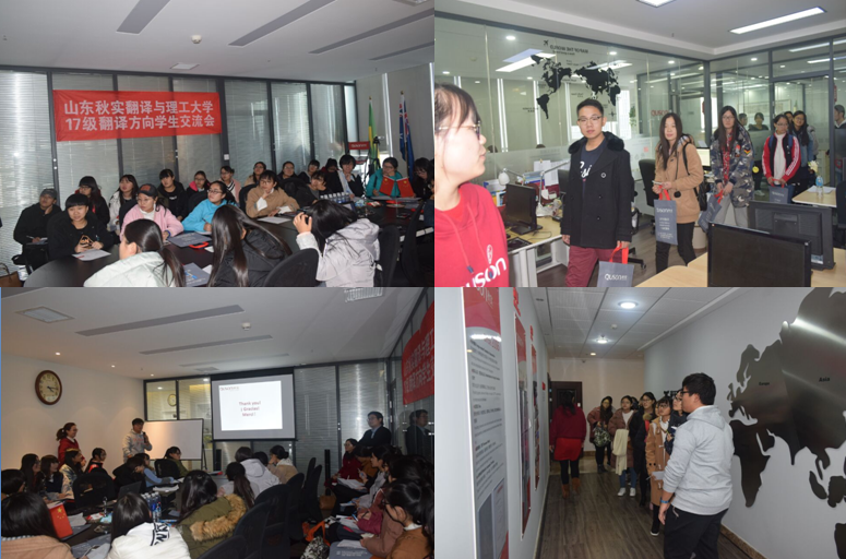 作为山东理工大学的实习基地,企业向同学们介绍翻译行业的现状、未来趋势、合格译员的素质要求和常用的翻译工具等等内容,让同学们对即将从事的翻译工作有更全面的了解,为他们今后的学习提供指导,让同学们更加热爱自己的专业。讲座之后的答疑环节为同学们对自己专业或今后的学习方面的问题提供解答,减少他们的疑惑,让同学们清楚大学四年自己的努力方向应该是什么。通过此次活动,双方希望能实现企业与高校之间的良性互动,达到企业和高校互利互助的双赢成果。