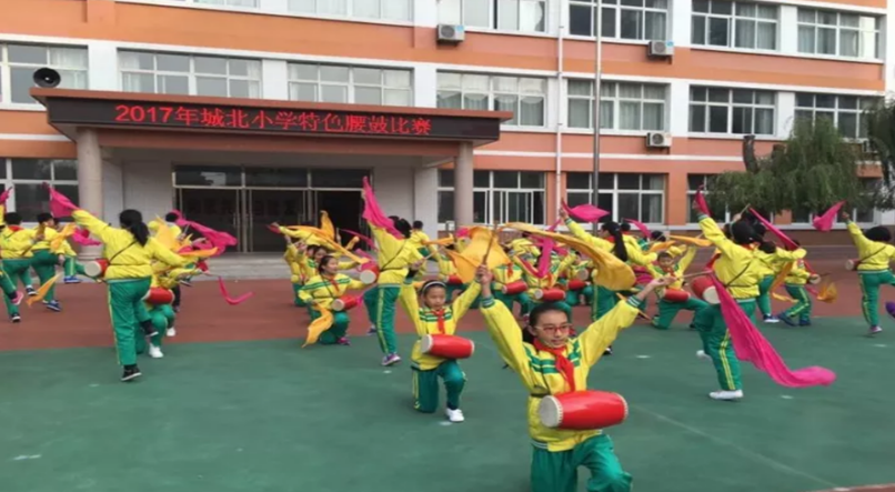 推体育艺术特色校园创建,城北小学师生齐聚操场,举行了一场精彩的腰鼓展演比赛活动。