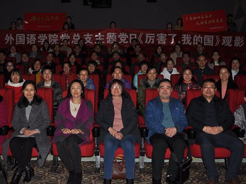 3月9日下午,外国语学院党总支举行主题党日活动,学院领导班子成员、教师党员代表及学生党员代表至齐纳影城观看电影《厉害了我的国》。