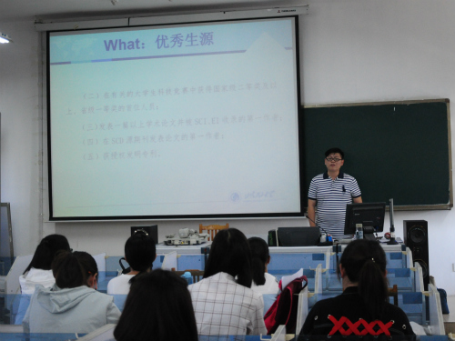 随后,叶湘老师向同学们介绍申请优秀生源的途径、方法以及如何进行遴选。还进一步指出,申请者拥有自主选择其心仪导师的权利。最后,对于同学们提出的各种疑问和相关细则,与会教师详细进行了解答。