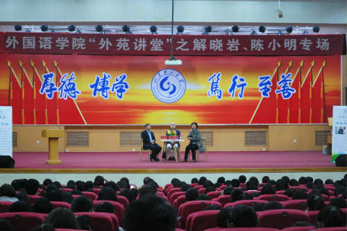 为促进外院学子深入学习中国优秀传统文化,增强文化自信,争做优秀文化传播的排头兵,培养学生国际视野,搭建学生放眼望世界、迈步向未来的平台,外国语学院“外苑讲堂”历经多时筹备,于10月23日晚拉开帷幕。首场报告会特邀中国著名外交官叙利亚问题特使解晓岩、中国驻埃及亚历山大总领事陈小明作主题报告。此次报告会由学院党总支书记李静主持,院长王明新、党总支副书记姜素锦、副院长于志涛及学院师生参加。