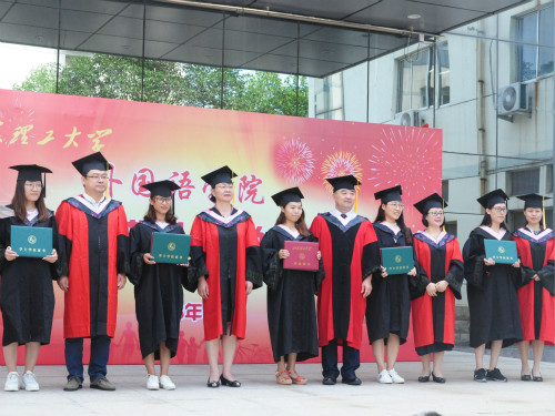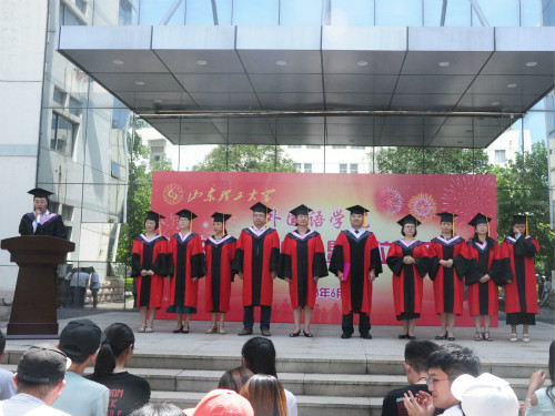 6月29日上午,外国语学院于学院西门举行2018年毕业典礼暨学位授予仪式,学院党总支书记李静,学院学位评定分委员会主任、院长王明新,教授委员会副主任王晓华、副院长于志涛,院长助理、教学科研工作办公室主任张燕及各专业系室优秀教师代表参加此次毕业典礼。