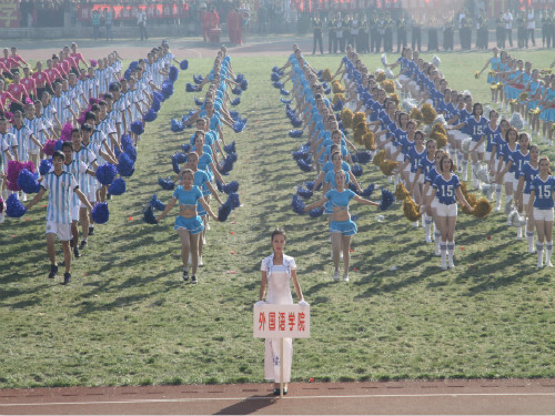 “现在向我们走来的是外国语学院代表队……”。随着主持人激情饱满的话语,我院方阵队的同学们踏着铿锵的音符,以最饱满的精神面貌向场上走来。领队高举标杆,自信昂扬;方队步调一致,意气风发,无疑不展现着优秀外院人的风采。他们用无数次的认真训练完成了由懒散无力到整齐有序的蜕变,并最终收获了大家赞许的目光,验证了青春无悔的誓言!