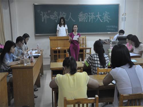 6月13日晚,我院“译”鸣惊人翻译大赛于8号教学楼402、403教室举行,我院教师孙继成、杨宁担任此次比赛的评委。