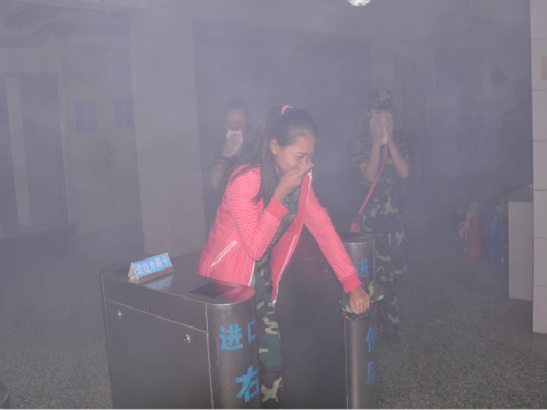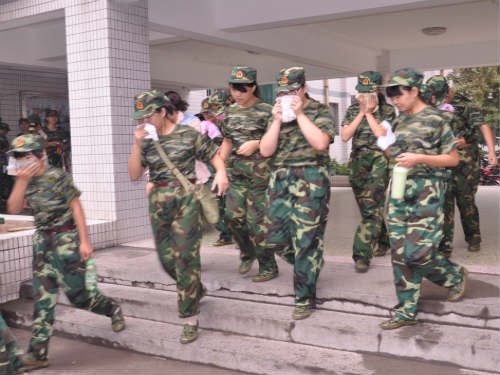 912日早上,34号公寓楼响起响亮的哨子声,学院14届新生应军训期间安排,开始火灾紧急疏散演练。一楼预定放烟雾的同学点燃烟雾弹以模拟火灾现场,顿时浓烟四起,全体军训学生紧张有序的往预定地点集合。