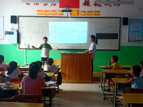 伴随着第二天清晨的来临,我们满怀期待的支教之旅开始了。我的第一堂课是大班的语文,这个班级汇集了五年级即将要升六年级的孩子们,这是我第一次给孩子们上课,对于孩子们的学习进程没有过多的了解,也没有过多的准备,但是孩子们脸上纯真的笑容,将我慌乱的内心抚平。她们的笑容像是花朵绽放在她们的脸颊,直击灵魂深处。孩子们脸上的信任,使我的支教第一堂课顺利结束,内心满是欢喜。