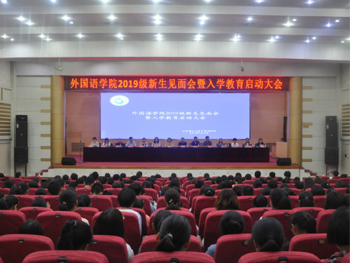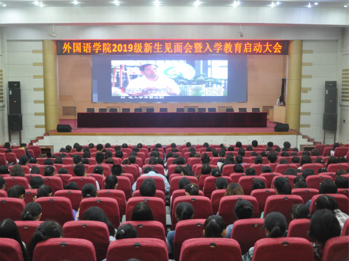 9月13日上午,外国语学院在3号教学楼报告厅举行2019级新生见面会暨入学教育启动大会。学院党政班子全体成员、各专业系室主任、班级导师、辅导员以及2019级全体新生参加此次大会。