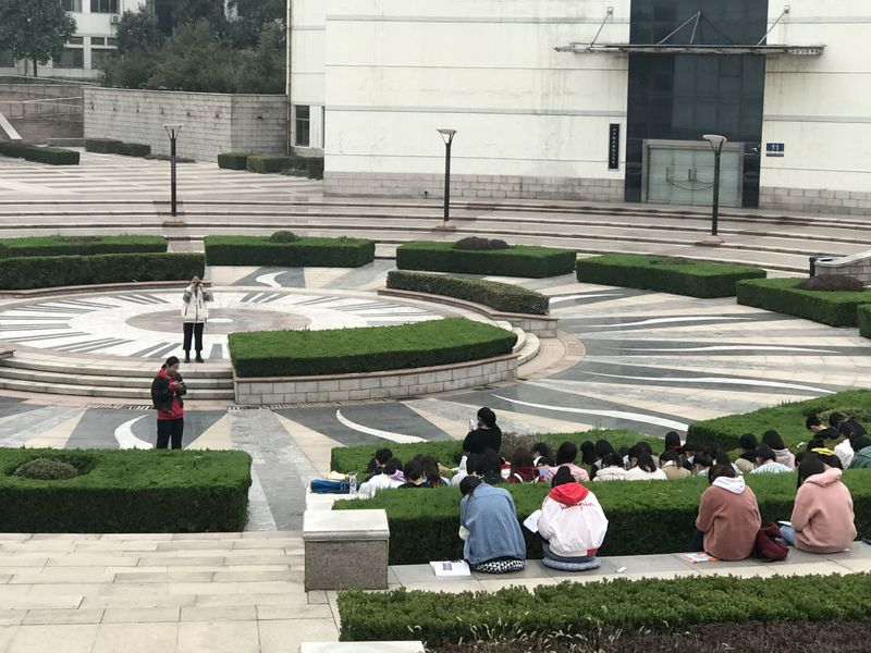 10月22日清晨,在大学生艺术中心广场,外国语学院“早安,理工”晨读活动照常举行。晨读活动由学院朗读协会主办,此次邀请了英教 1802张榕珊同学担任领读嘉宾,2019级全体同学参加。