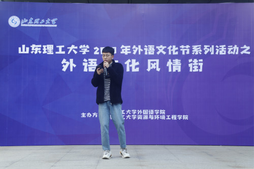 活动伊始,由主持人介绍活动的活动内容、宗旨以及分区,4名学生献唱《歌唱祖国》,一系列精彩表演赢得阵阵掌声,随后两名主持人宣布“外语文化风情街”正式开街。
