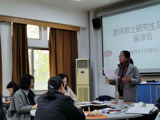11月21日下午,外国语学院在8号教学楼218室召开了翻译硕士研究生及导师座谈会。学院领导班子、2019级全体硕士生导师和2019级翻译硕士参加,副院长张燕主持座谈会。