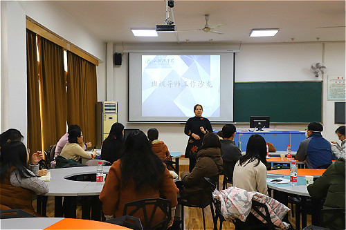 12月10日下午,外国语学院在8号教学楼218室举办班级导师工作沙龙活动。学生心理健康教育与咨询中心教师王素霞主持此次活动,18级和19级班级导师积极参加。