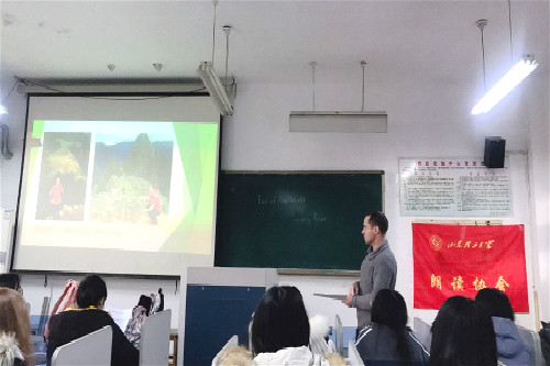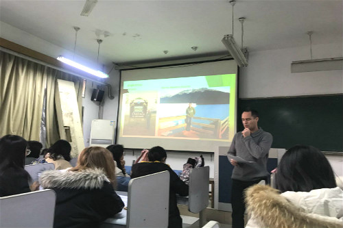 为进一步提高学生学习英语兴趣,提高学生英语口语表达能力,丰富学生课余文化生活,12月12日下午,外国语学院朗读协会在8号教学楼112教室举办外教沙龙活动——“Dave带你去旅行”。学院外语教师Dave Bell 担任此次活动主讲人,学院英语专业学生积极参加。