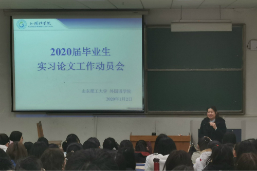 1月2日下午,外国语学院在4号教学楼103教室召开2020届毕业生实习论文工作动员会。教师贾玉洁担任此次会议的主讲人,2020届毕业生积极参加此次动员会。