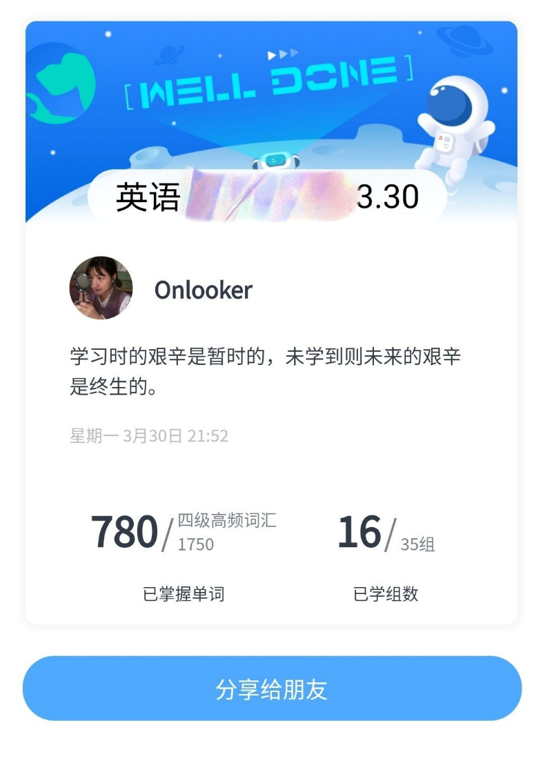 15天很快过去了,坚持打卡的同学们都分别获得了相应的奖项,获得了相应的学分,对同学们来说,练习英语不仅仅是一项加分有奖品的活动,更是一种良好的习惯,相信即使活动结束了,同学们也仍然会坚持背诵读写英语单词、句子、文章,这种良性循环将不断促使我们成为英语水平更高的人。