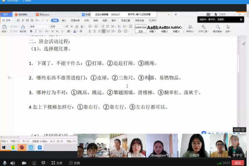 在支教活动已进行三分之一之际,7月19日下午,实践团召开了一场别开生面的班会,成员赵瑞雪、王晓萍、王珊珊、田润、张超、李华宇六人与房家村的学生参加。此次班会主要围绕暑期安全问题进行探讨。班会伊始,实践团成员通过动画短视频向学生讲解暑期安全事项,主要包含对待陌生人问路的正确方式、防溺水知识、家中隐匿的危险、对待火灾的正确做法、出门时的注意事项等等。随后,6位团队成员通过分析案例、情景模拟、朗读顺口溜等方式向学生们讲解防溺水安全、居家安全、交通安全三个板块的防护知识。最后,学生们积极回答实践团成员提出的安全教育题目,再次复习学过的安全知识。通过十几分钟的题目讨论问答得知:安全意识已深深的刻在学生们的脑海中。