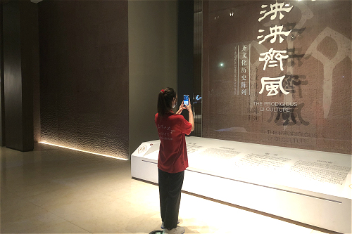 随后,李华宇向学生们讲解特色陈列厅中的齐地考古、煌煌齐都、稷下学宫三个部分的文化知识。她通过向学生们展示展厅中稷下学宫部分放置的案几,形象地还原战国“百家争鸣”时期贤士辩论的场景,她精彩的讲解和学宫内的一件件珍品都引起学生们的阵阵赞叹。此外,她还组织学生们朗读我国最早的“学生守则”——《弟子职》的部分内容,学生们齐声朗读,体会作为中小学生应尽的义务和责任。