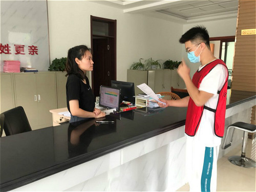 据悉,在疫情期间,外国语学院邵元同学的主要工作是记录来往人员车辆的信息和测量体温。此外,她还负责进行挨家挨户的传单发放,向社区居民宣传疫情疾病防控相关知识。