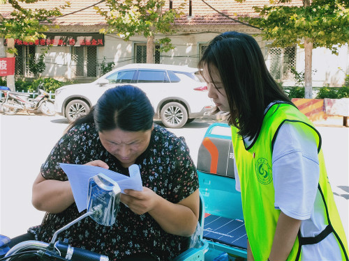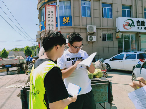 为提高工作效率,实践队员分工合作,划区域分组开展调研。队员们针对各自负责区域,了解当地村民对电商经济的了解程度,深入调研当地村民实际经济发展中的问题。为确保此次调研的覆盖范围和调研数据的准确性,在发放调查问卷的过程中,实践队员随机选取各个年龄段村民进行集中调研。同时,实践队员利用休息时间询问村民有关调研问卷的问题,并与村民进行攀谈。实践成员与村民热情交谈,对于发现的问题认真记录,村民们积极配合,主动与成员谈讨倾诉。