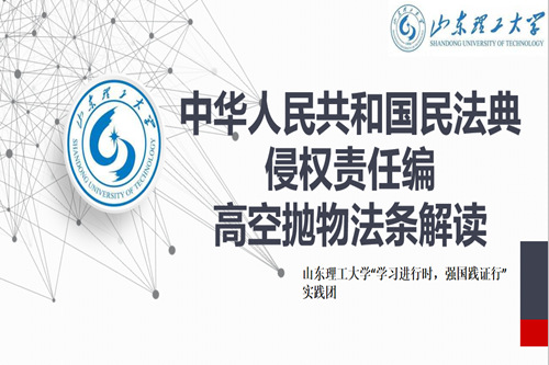 为助力“七五”普法计划,提高居民法律意识,8月8日晚,我院“学习进行时,强国践证行”社会实践团通过抖音直播平台开展普法宣讲活动。实践团成员刘屹就民法典中“高空抛物”法条进行讲解,淄博市周村区和平花园居民积极参加。