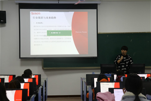 最后,山东秋实翻译有限公司胡威经理向学生介绍公司的业务范围和翻译业务的操作流程,并展示公司的各项翻译成果并分析翻译行业的发展前景。此外,他讲解公证翻译的特点和注意事项,重点强调合格译员的能力与素质要求,提醒学生要提高翻译的基本能力与素养,进一步提高英语听力、理解和表达能力,增强自身的综合素质。