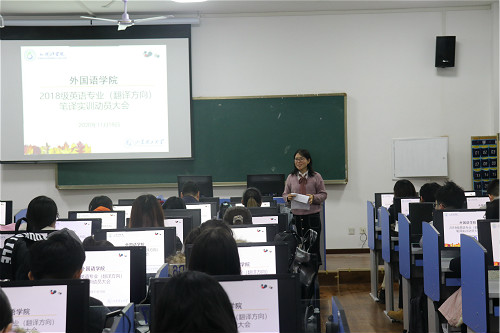 此次动员大会旨在提高学生对笔译实训的重视程度,以饱满的热情投入笔译实训,提高自身翻译水平,对学院良好学风的建设起推动作用。(撰稿:张怡 李小雨 摄影:张怡)