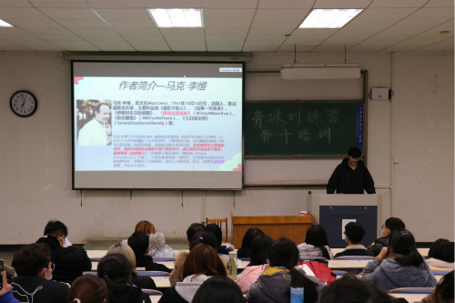 11月28日晚,我院2020年度“青冰训练营”学生骨干培训会在4号教学楼105教室顺利举行。此次培训会由“漫步书香,润泽心灵”最美读后感活动中的获奖学生郭峰、明宵叶、王宇、王瑜晖和段坤霞主讲,学院2019级和2020级全体班委参加。