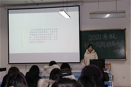 1月6日晚,外国语学院2021年寒假社会实践动员大会在8号教学楼116教室顺利举行。此次动员大会由学院2019级辅导员邢琛以及学生会社会实践部部长刘耀华主讲,学院各班级班长和团支书参加会议。