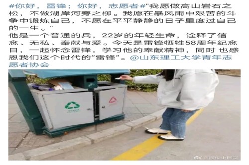 为响应学雷锋活动号召,弘扬雷锋精神,强化志愿服务意识,构建和谐校园,自3月12日起,外国语学院面向学院全体学生开展“你好,雷锋;你好,志愿者”主题线上互动活动。