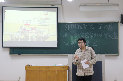 为培养学生英语学习兴趣,5月23日晚,外国语学院在8号教学楼406、407教室举办第四届“Spelling Bee英语单词大赛”决赛,学院教师孙继成、徐秀梅、李金凤、赵莉担任评委。各学院入围选手参加此次比赛。