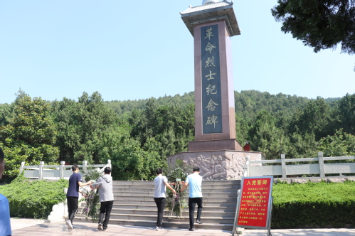 第三站,党员教师来到文峰山下参观鲁南革命历史纪念馆,纪念馆共分“赵镈事迹陈列展馆”和“理想信念教育展馆”2个展厅,展示了鲁南人民在各个革命时期的斗争历史。随后,党员教师们在革命烈士纪念碑前向革命烈士敬献花篮,深鞠三躬,深切缅怀在战斗中牺牲的革命前辈,并集体重温入党誓词,以坚定有力的誓言,表达不忘初心、砥砺前行的信念和决心。