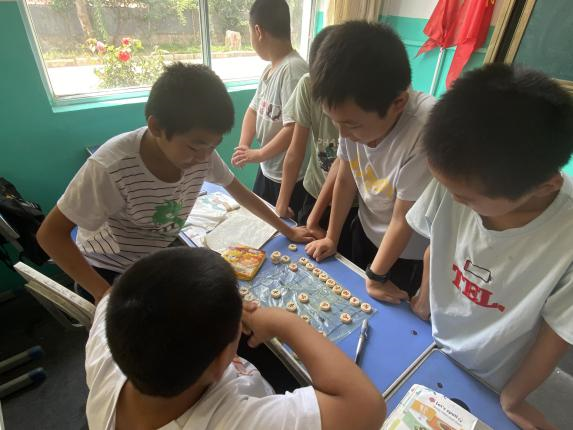 随后,实践团成员在向学生们问到课余活动方面的情况时,学生们兴奋地向我们介绍说:学校为他们每天准备了一个小时的“阳光体育”活动时间,在这一个小时中,他们会统一组织做广播体操,跑步和其他体育活动。此外每天还有半个小时的书法时间以及阅读时间,学校还会每个学期为他们定期更换教室图书角的图书。除此之外,实践团成员在与学生们交流的过程中还了解到:他们有22个兴趣社团,每周五下午是社团活动时间:有电影赏析、 书法、围棋、象棋、 跳绳、声乐等。课余时间丰富多彩,其中每个社团都会定期举行各种活动和比赛,并设有一定的成绩绩点算入期末学习成绩中。这让他们对社团活动很感兴趣,让学生做到了德、智、体、美、劳全面发展。