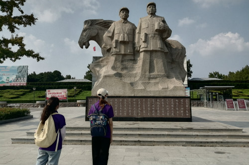 8月18日,“红色足迹”社会实践团成员高海燕、邢艺馨、李洁组织前往孟良崮战役纪念馆开展“寻根孟良崮,红色沂蒙行”参观学习活动。