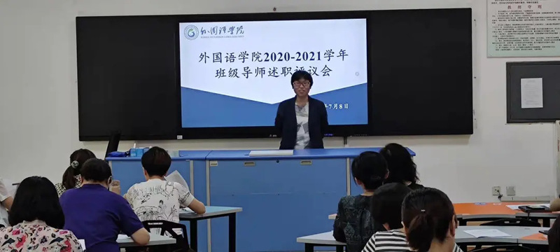 为切实加强我院班级导师队伍建设,充分发挥班级导师在大学生学业指导与日常管理中的作用。根据《山东理工大学班级导师制实施办法》相关要求,2021年7月8日上午,外国语学院在8号教学楼218教室召开2020-2021学年班级导师述职评议会。学院班级导师工作领导小组成员及19、20级班级导师参与本次述职评议。