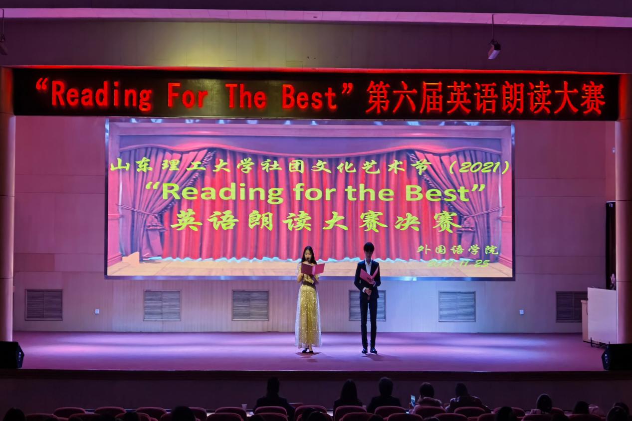 为切实提高学生的英语朗读能力与外语应用水平,提升英语学习热情和实践应用能力,11月25日晚,外国语学院在三号教学楼报告厅举行“Reading For The Best”第六届英语朗读大赛决赛。本次大赛由优秀教师高建国、杨宁、岳红丽、孔海燕、陈顺利担任评委,由学生陈洁琪、刘金龙主持,20位晋级决赛的选手以及学院21级学生共同参加。