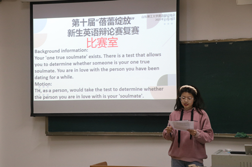 为进一步提高学生的演讲水平与随机应变能力,培养学生自主思考的良好习惯,11月27日晚,外国语学院在八号教学楼401等教室举办第十届“蓓蕾绽放”新生英语辩论赛复赛。此次比赛由学校英语辩论协会承办,英语1802班学生韩沛然、英教2002班学生薛琪蕾等往届优秀辩手担任评委,在淘汰赛胜出的选手参与比赛。