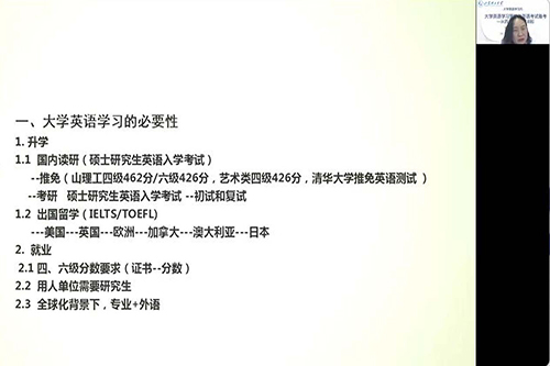 外国语学院副教授张蕾老师从四、六级考试视角,就大学英语学习策略与英语考试备考进行了详细讲解。