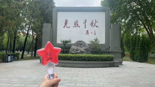 图为实践团成员进行红色地标打卡。邓小平对沂蒙老区的发展十分关注,1990年题词:光照千秋。