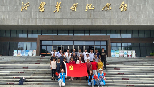 图为实践团成员在革命纪念馆前合照。沂蒙革命纪念馆东邻华东革命烈士陵园,主要用于沂蒙革命精神展示、红色影视教育、党史陈列、沂蒙革命精神研究、群众路线展示等。