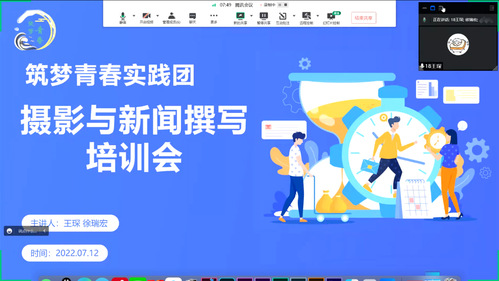 7月12日晚,外国语学院筑梦青春社会实践团在线上开展摄影与乐鱼(中国)官方撰写培训会。此次会议由实践团成员王琛,徐瑞宏主讲,实践团全体成员参加。