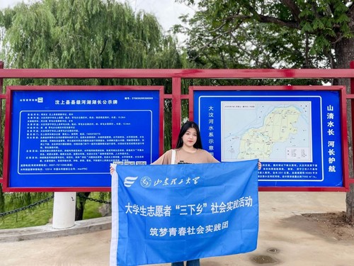 7月15日,外国语学院“筑梦青春”社会实践团成员白金鑫,在山东省济宁市汶上县军屯乡溢流坝风景区开展“追寻黄河印迹,践行生态调研”溢流坝风景区参观调研活动。