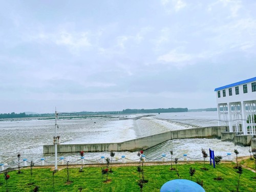 汶上县琵琶山溢流坝风景区位于济宁、泰安两市交界地带的大汶河上。实践团成员在汶上县琵琶山溢流坝管理所工作人员的带领下,对溢流坝进行了参观,并就黄河流域(汶上县境内)和乡村建设现状进行了学习。该工程始建于1966年,在三十多年的运行过程中,形成了系统、完善的农田灌溉和工业引水体系,作为汶上县东部地区的水源,在汶上县东部地区的引、蓄水及两岸农田的地下水回灌中,发挥了巨大的工程效益,被誉为汶上人民的“生命线”。