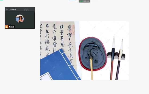 最后,以书法为切入点,分别向学生介绍了文房四宝——笔墨纸砚。笔墨纸砚分别指笔、墨材、纸张和砚台,起源于南北朝时期,是中国独有的文书工具。另外,实践团队员们向学生悉心介绍了著名的书法家王羲之、颜真卿、柳公权以及他们的代表作。