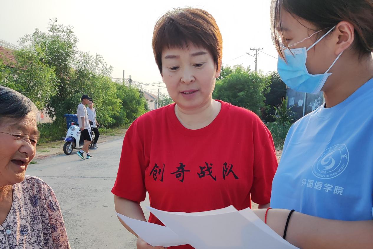 (图为实践团成员在对村民进行问卷调查)