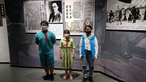 图为实践团成员与青少年在烈士纪念馆内合影。
